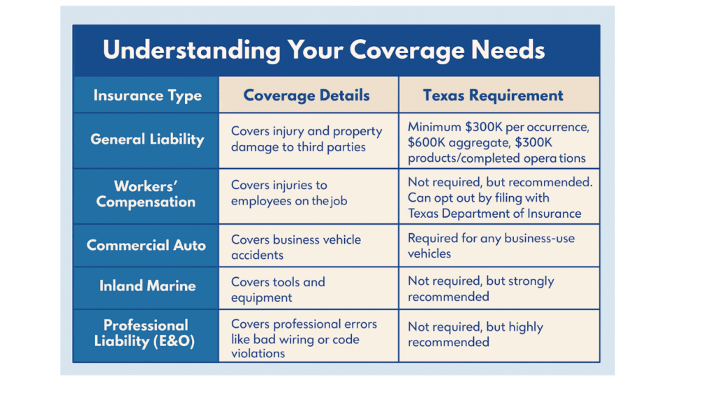 Every Texas electrical contractor must meet certain insurance standards set by the Texas Department of Licensing and Regulation (TDLR). Here’s what you need to know: